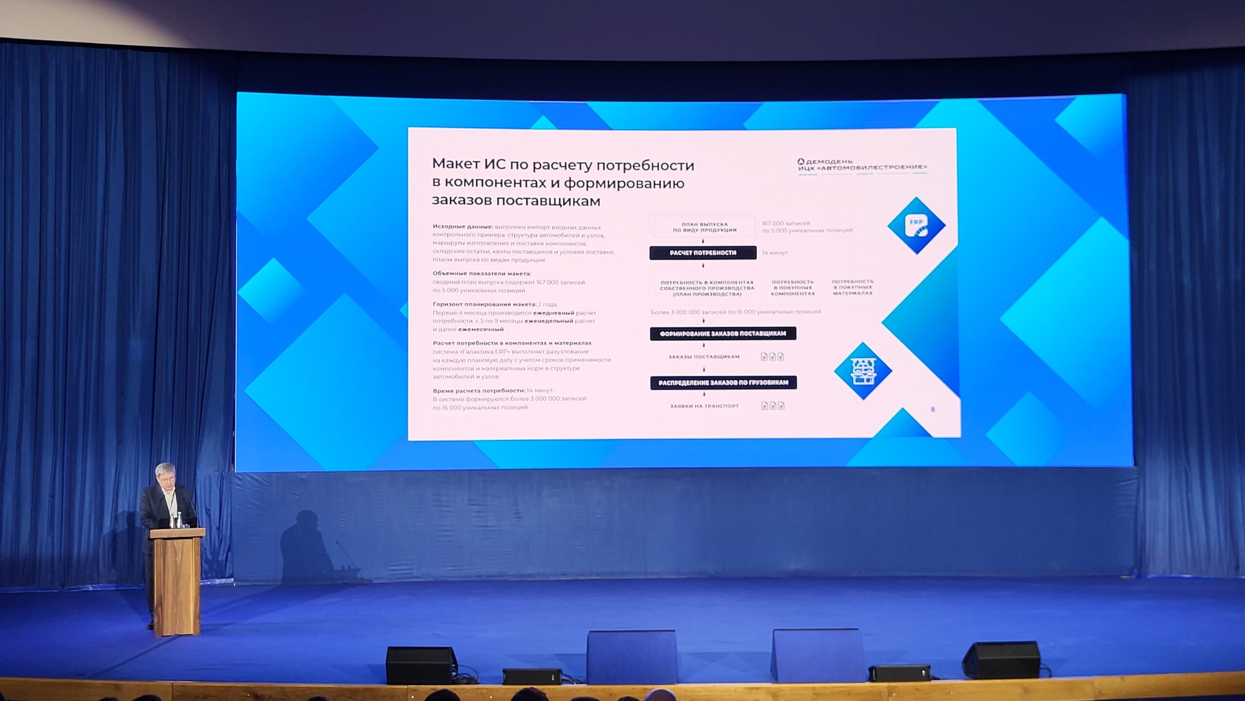 В пленарной сессии с докладом выступил генеральный директор АО «Корпорация Галактика» Игорь Целиков. Был презентован весь комплекс решений корпорации «Галактика» для промышленности, его особенности и преимущества, а также уникальный по быстродействию и функциональному наполнению макет ИС по расчету потребности в компонентах и формированию заказов поставщикам, созданный совместно с одним из крупных предприятий автомобилестроения.